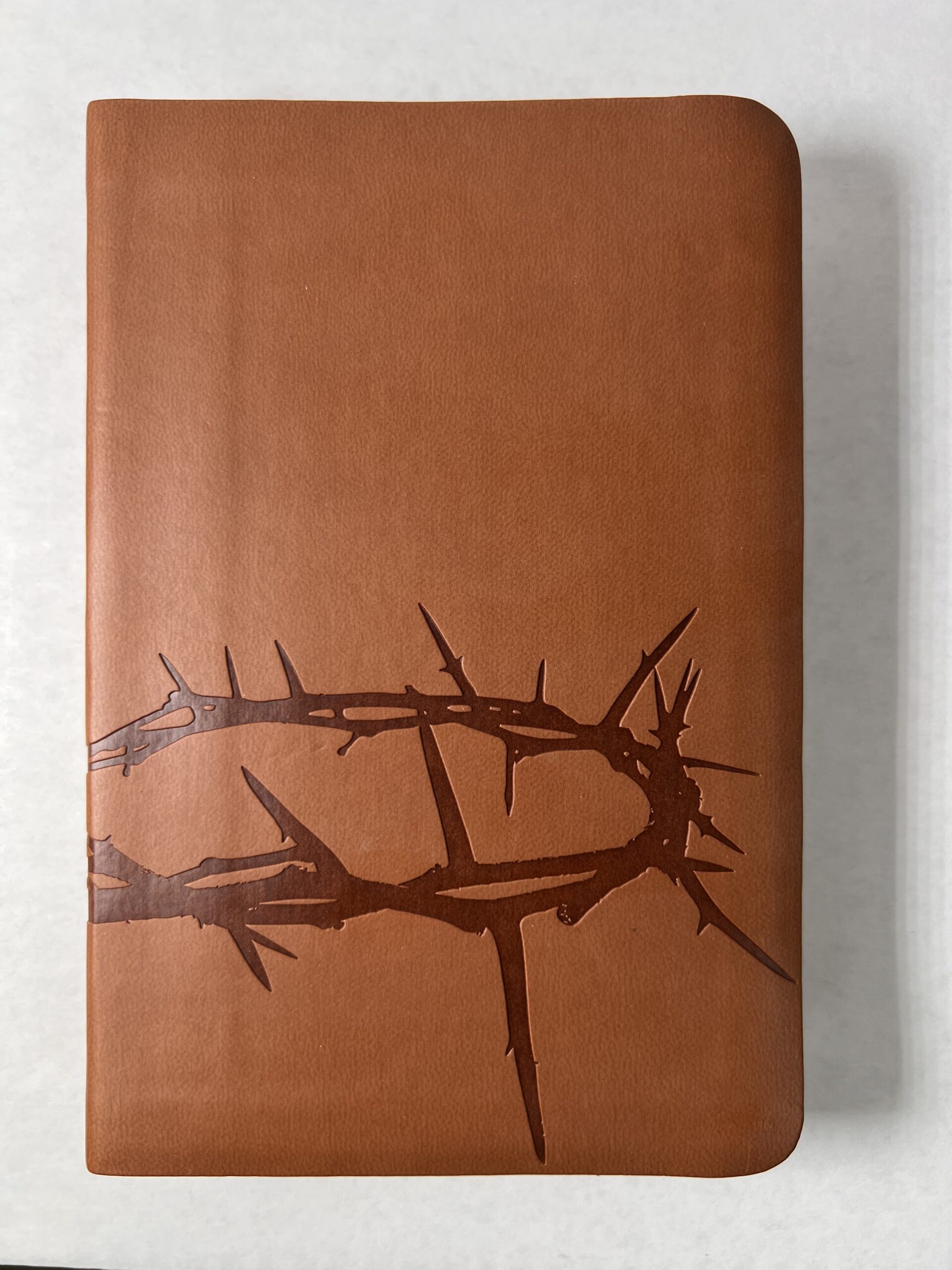 The simulated tan leather cover is elegantly embossed with a Crown of Thorns design, giving it a distinctive and reverent appearance. Its pocket-sized format makes it ideal for travel, church, or everyday carry. Inside, you’ll find helpful features such as a presentation page, easy-to-read type, and quality binding for long-lasting use.
